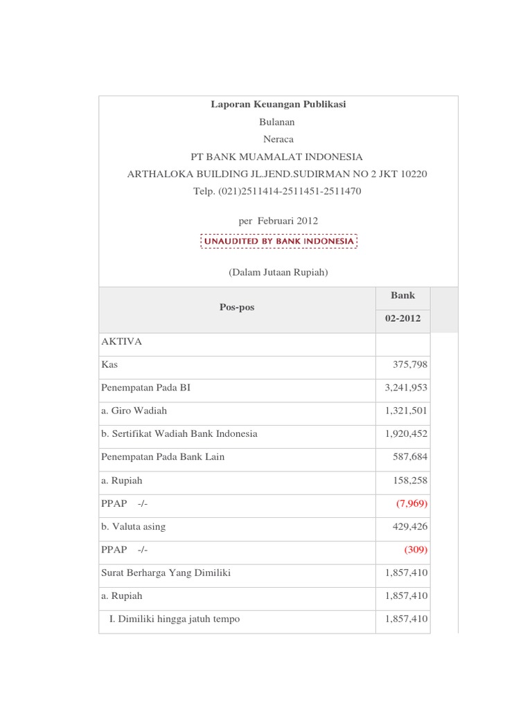 Laporan Keuangan Pt Bank Muamalat Indonesia Tbk