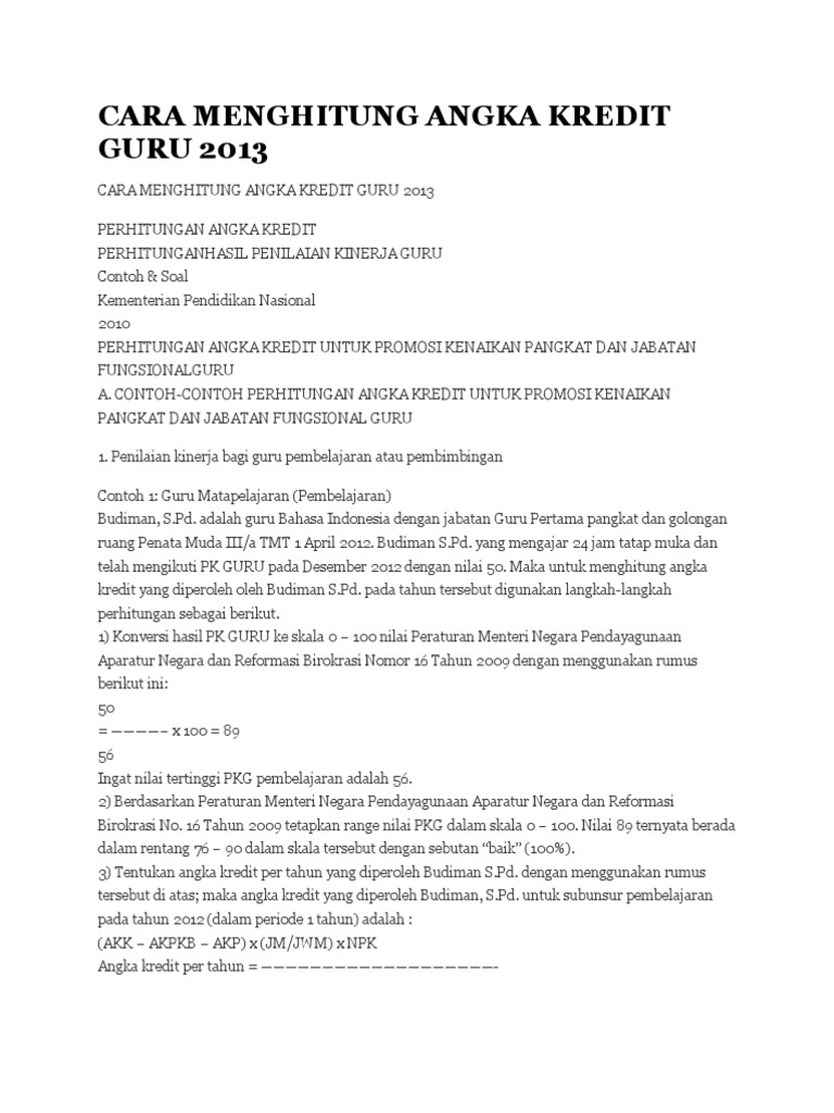Contoh Menghitung Angka Kredit Pak Berdasarkan Penilaian