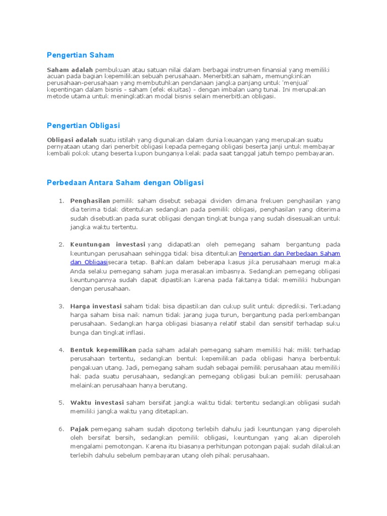 Bagi para investor atau masyarakat harus mengetahui terlebih dahulu perbedaan apa saja yang terdapat didalam keduanya. Saham adalah pengertian jenis contoh obligasi perbedaannya dosenpendidikancom saham dan obligasi merupakan sama sama usaha atau alat yang dapat digunakan untuk menghasilkan kekayaan. Saham adalah suatu bukti kepemilikan terhadap suatu perusahaan.