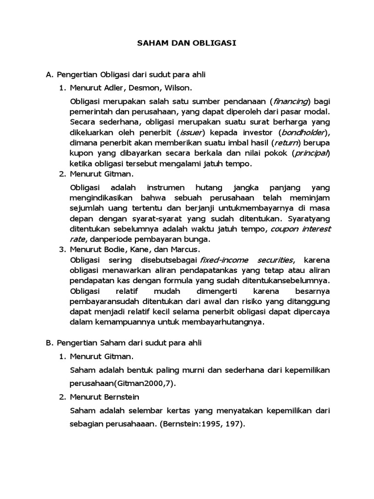 Pengertian Saham Dan Obligasi Menurut Para Ahli Tipsserbaserbi