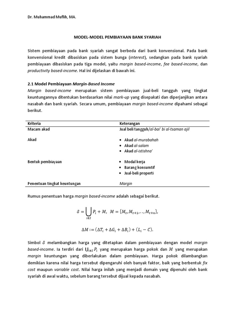 Model Model Pembiayaan Bank Syariah