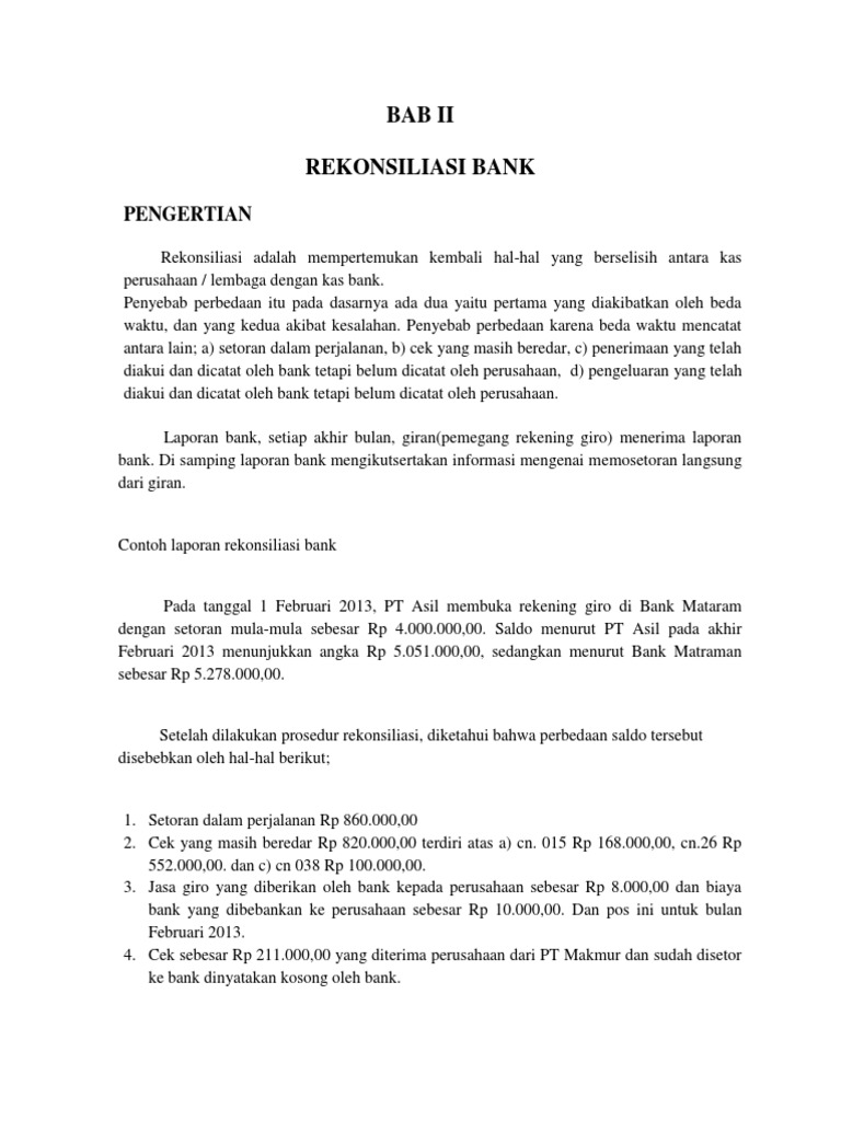 Rekonsiliasi Bank Prosedur Dan Bentuk Rekonsiliasi Bank