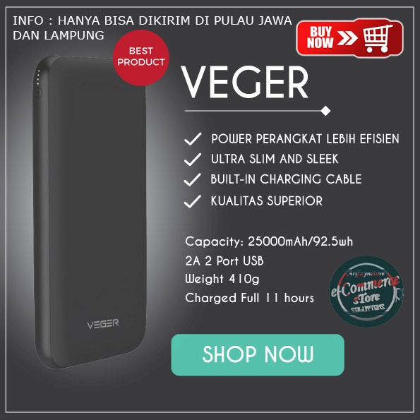Dalam sehari pabrik veger bisa memproduksi kurang lebih 20 ribu unit power bank setiap harinya. Veger menawarkan power bank dengan kapasitas daya yang cukup besar yaitu mulai dari 10000 mah sampai 25000 mah. Untuk power bank pnya saya veger 10000 mah sangat lma ngecarger nya biar full hrs ngisi smpai 45 jam lama ngecas batre ny.