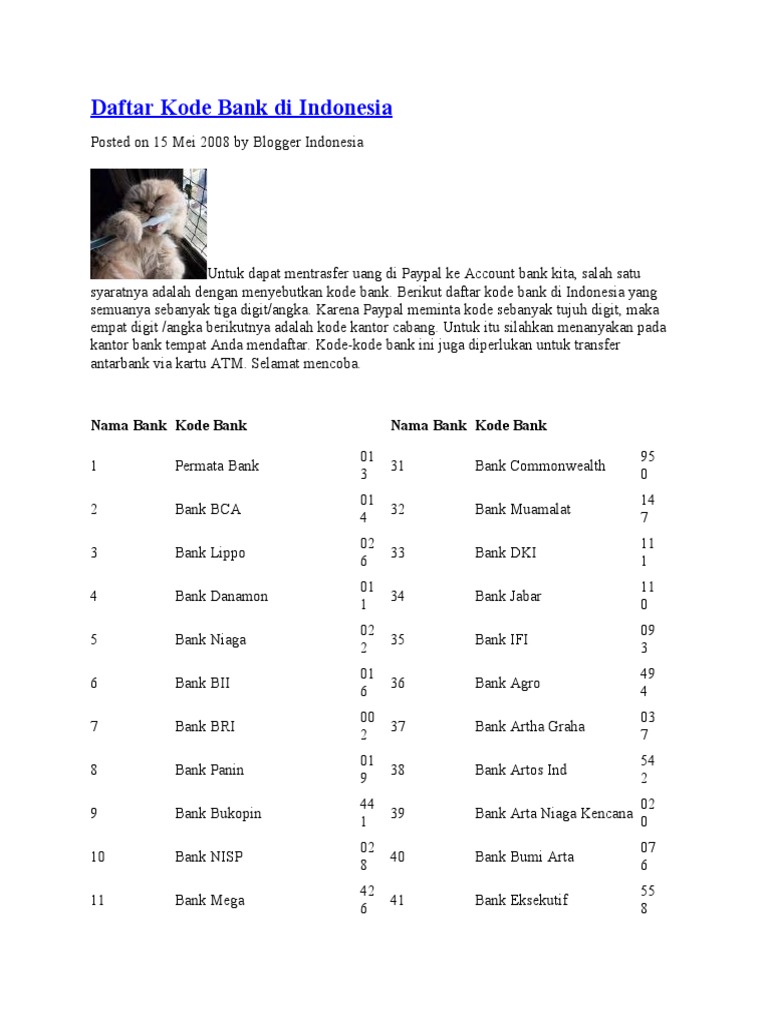Daftar 7 Digit Kode Bank Di Indonesia Untuk Paypal