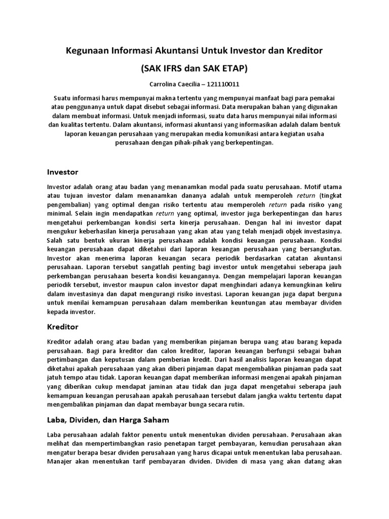 Kegunaan Informasi Akuntansi Untuk Investor Dan Kreditor