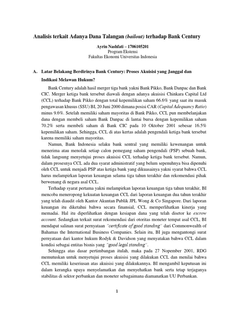 Pendidikan kewarganegaraan analisa kasus yang berkaitan dengan demokrasi ham kasus bank century makalah disusun oleh. Sedangkan dana yang ada di bank tidak ada sehingga tidak mampu mengembalikan uang nasabah dan tanggal 30 oktober dan 3. Analisis kasus bank century posted.