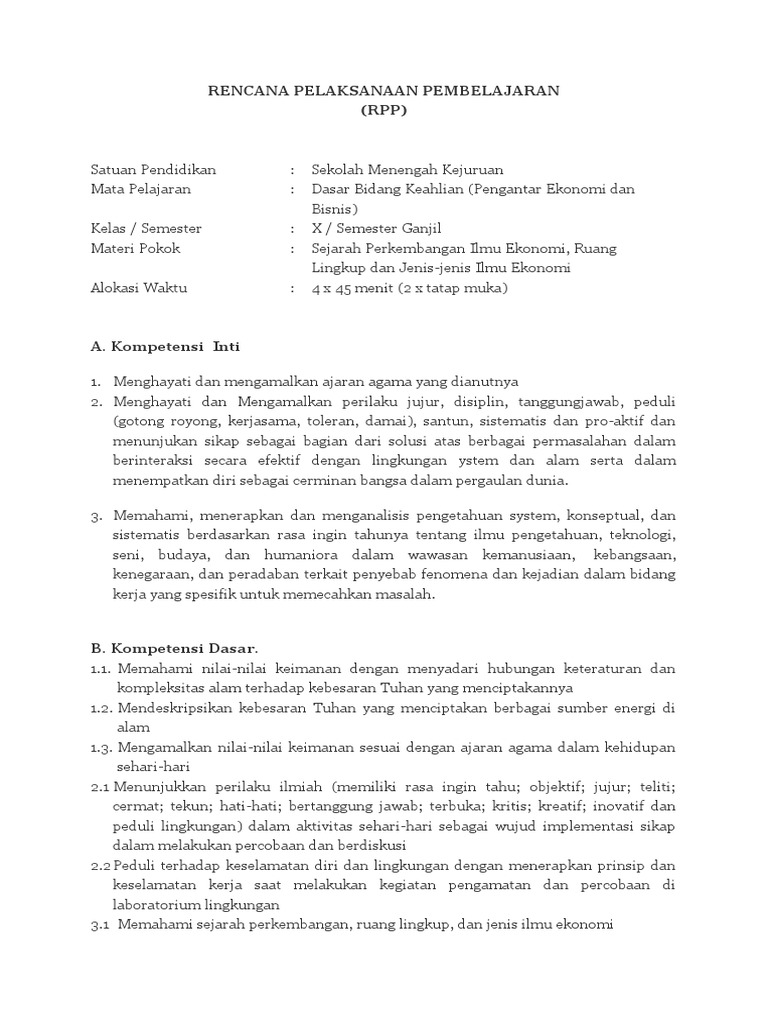 Rpp Dan Silabus Berkarakter Pengantar Ekonomi Dan Bisnis