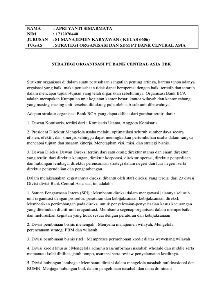 Strategi Organisasi Dan Msdm Pt Bank Central Asia Tbk