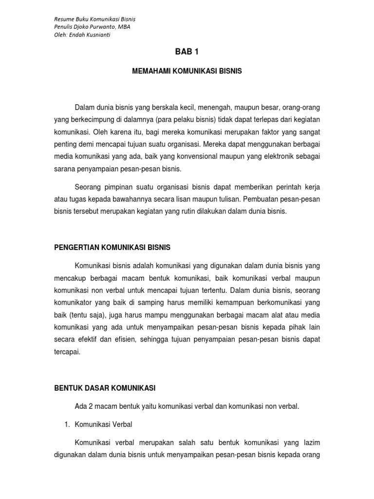 Resume Buku Komunikasi Bisnis Karya Djoko Purwanto Mba