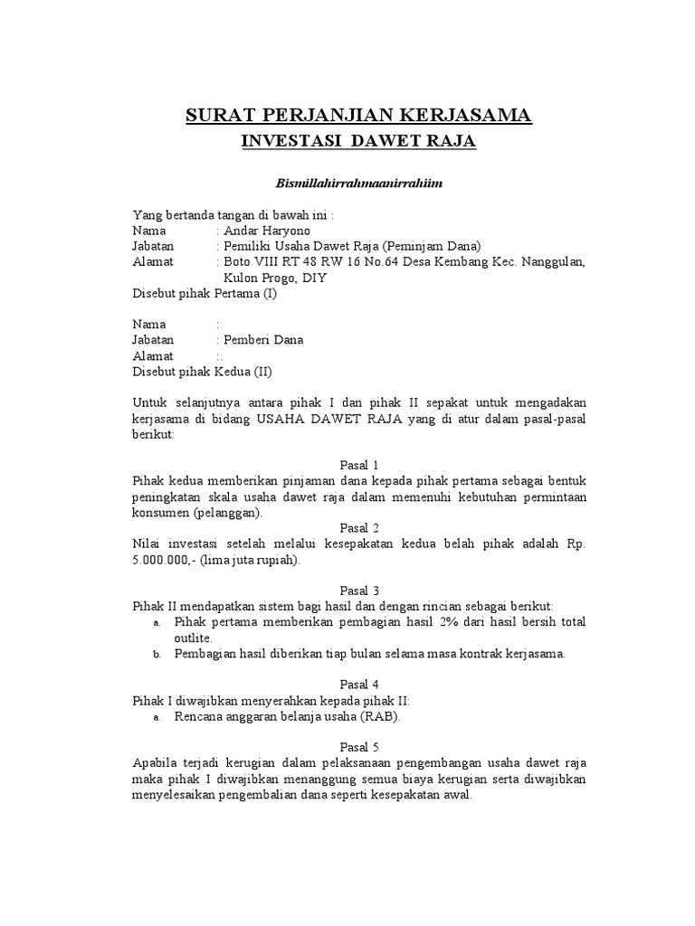 Surat Perjanjian Kerjasama Investasi Doc Recovered