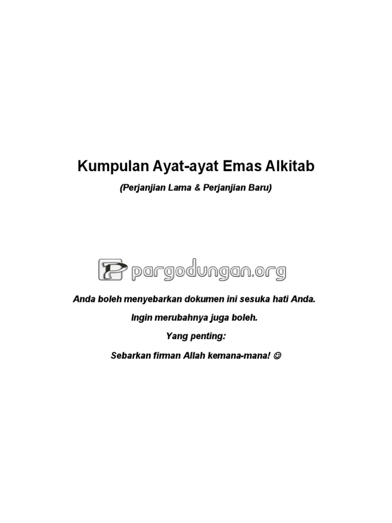 Sahabat bisa menambahkan ayat emas alkitab yang sahabat miliki dengan menambahkan dikolom komentar supaya menjadi berkat bagi orang lain tuhan yesus memberkati. Kumpulan ayat ayat emas alkitab perjanjian lama perjanjian baru anda boleh menyebarkan dokumen ini sesuka hati anda. Dalam alkitab termuat dua bagian yaitu perjanjian lama dan perjanjian baru.