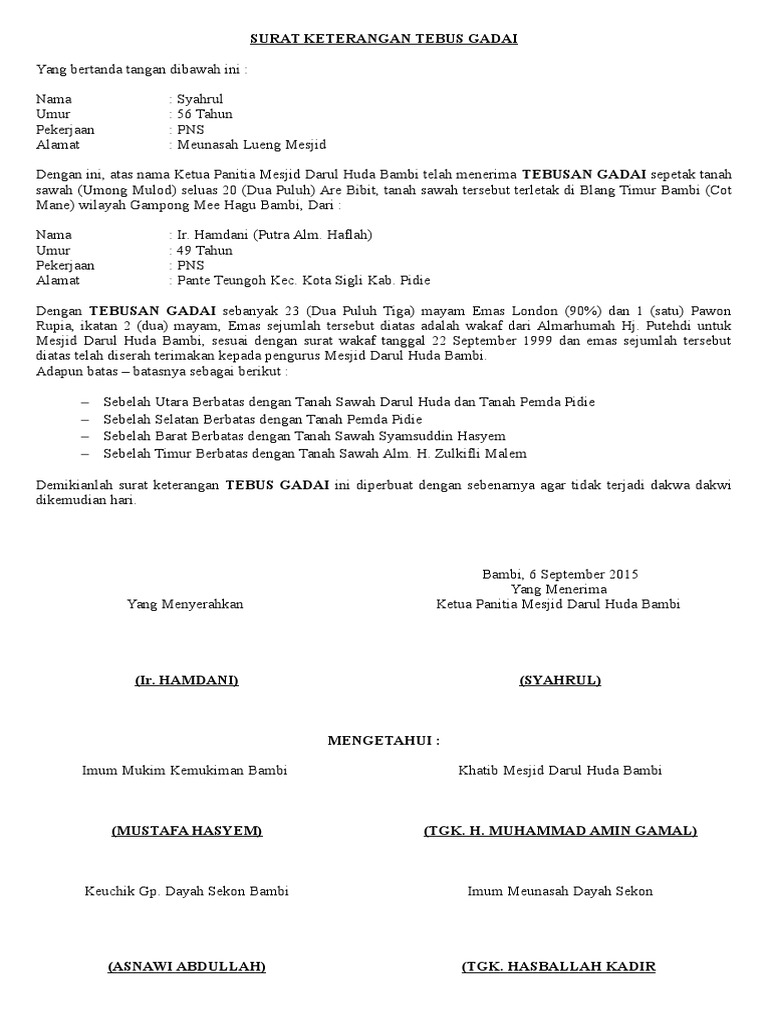 Download Contoh Surat Gadai Sawah Gudang Surat