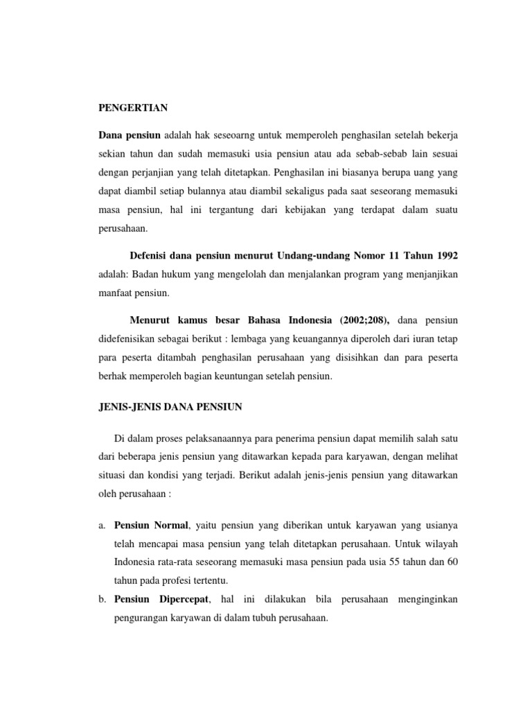 Berdasarkan uu tersebut dana pensiun lebih merujuk pada badan hukum atau lembaga yang bertanggung jawab menyelenggarakan dan mengelola program pensiun guna memberikan kesejahteraan kepada.