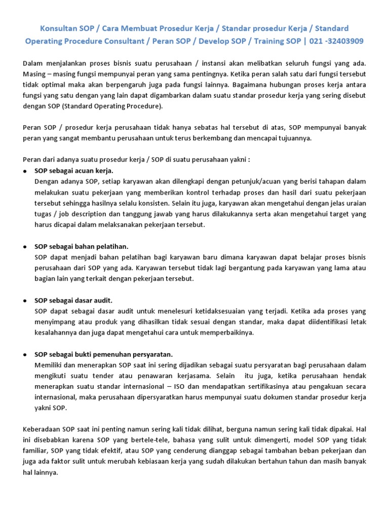 Konsultan Sop Cara Membuat Prosedur Kerja Standar