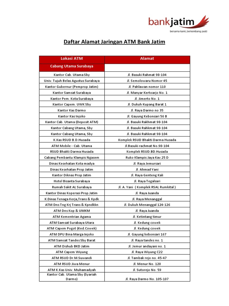Daftar Alamat Jaringan Atm Ban Jatim1