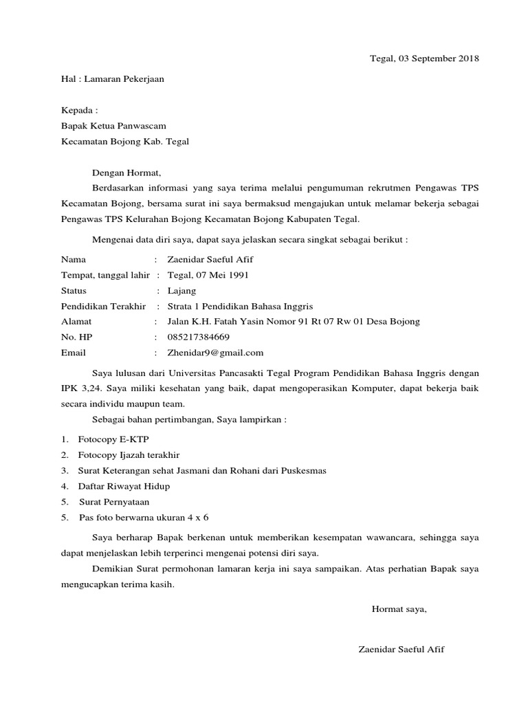 15 Contoh Surat Lamaran Kerja Yang Baik Dan Benar Ihaxor Com