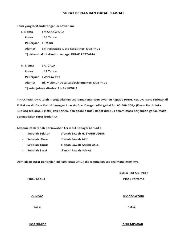 Surat perjanjian gadai sawah. Download via google drive. Kampung cintakarya rt 01305 cikopo bungursari jabar no. Selanjutnya disebut pihak pertama yang bertandatangan di bawah ini.