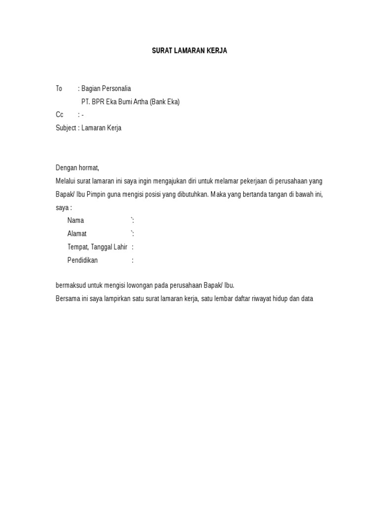 Contoh Surat Lamaran Kerja Bri Syariah Yang Baku Portalilmu