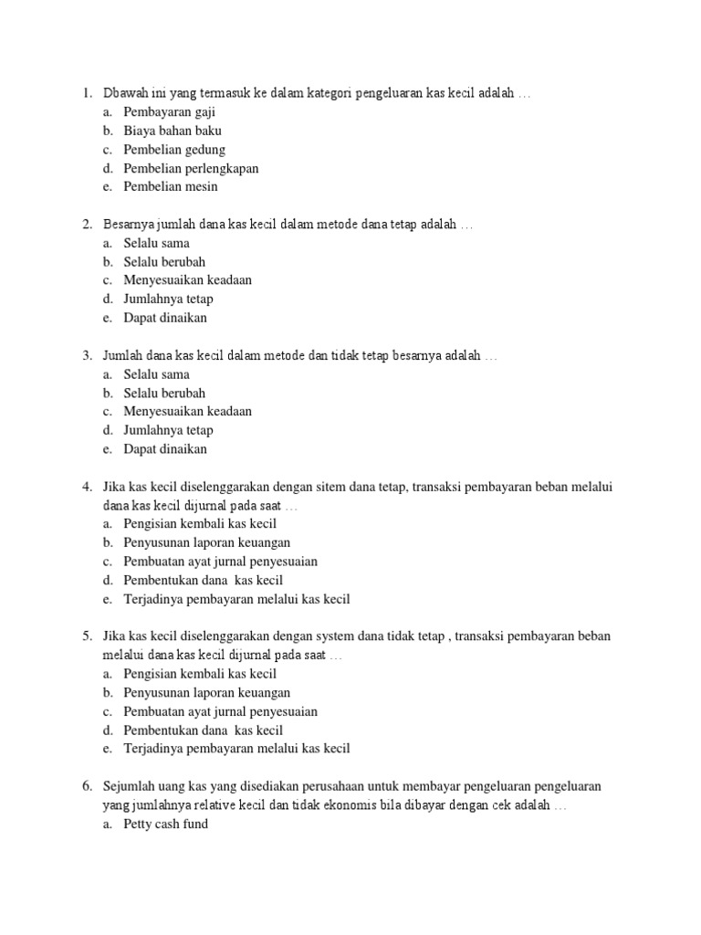 Soal Dana Kas Kecil Kas Kecil Petty Cash Dalam Perusahaan