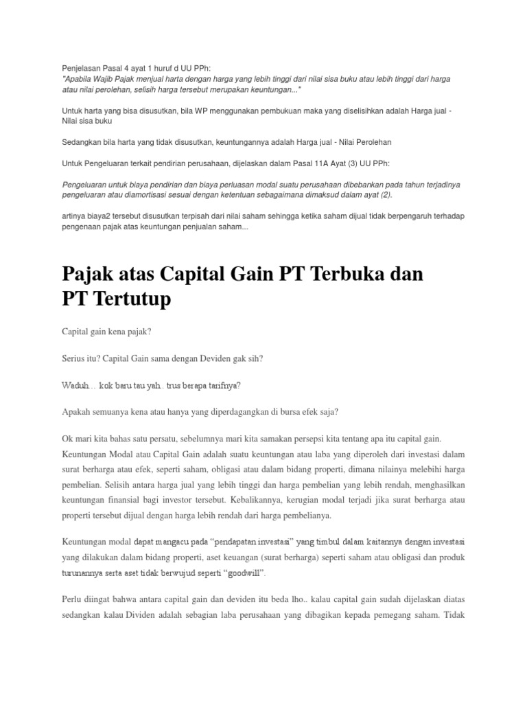 Saham perusahaan tbk terdaftar dalam bursa efek sedangkan pt tertutup tidak terdaftar di bursa efek. Pada september 2005 google menjual saham nya seharga 303. Untuk memperdalam pemahaman di atas berikut adalah studi kasus penerapan pajak penghasilan dari skema pengalihan saham yang dilakukan oleh perusahaan tertutup.