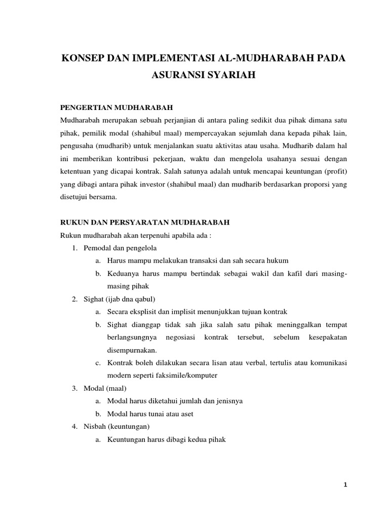 Implementasi Mudharabah Pada Asuransi Syariah