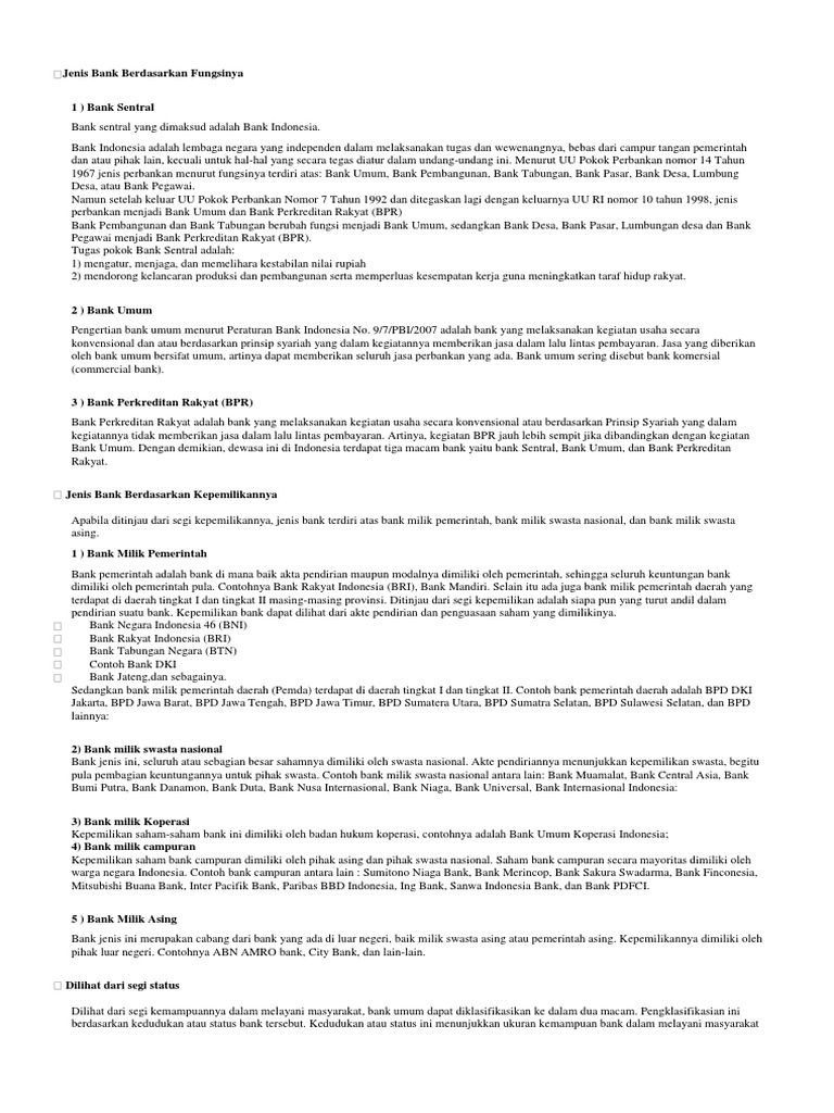 1130 umpu tanggal 27 agustus 1963 perihal penutupan kantor sdr. Tugas dan fungsi bank umum. 1992 tentang bank umum sebagaimana telah diubah dengan peraturan pemerintah nomor 60 tahun 1996 sehingga berbunyi sebagai berikut.
