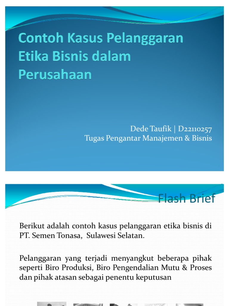 Sebuah usaha akan maju atau berkembang apabila pengelola bisnis memiliki etika yang baik dan. Pelanggaran etika bisnis pada albothyl oleh perusahaan pt pharos pendahuluan berita berita mengenai pelanggaran etika bisnis mendorong ketertarikan untuk menelusuri lebih lanjut faktor faktor yang mendorong dan dampak yang diakibatkan. Contoh kasus etika bisnis pada tahun 1990 an kasus yang masih mudah diingat yaitu enron.