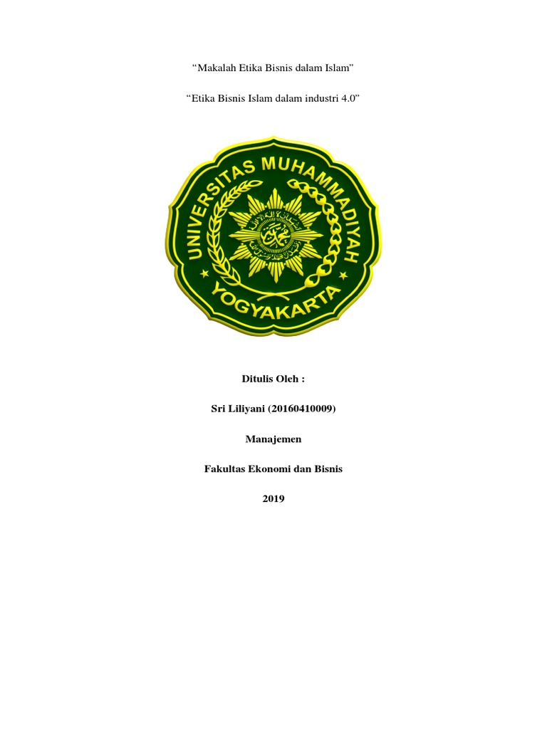 Makalah Etika Bisnis Islam Dalam Revolusi 4 0 Docx