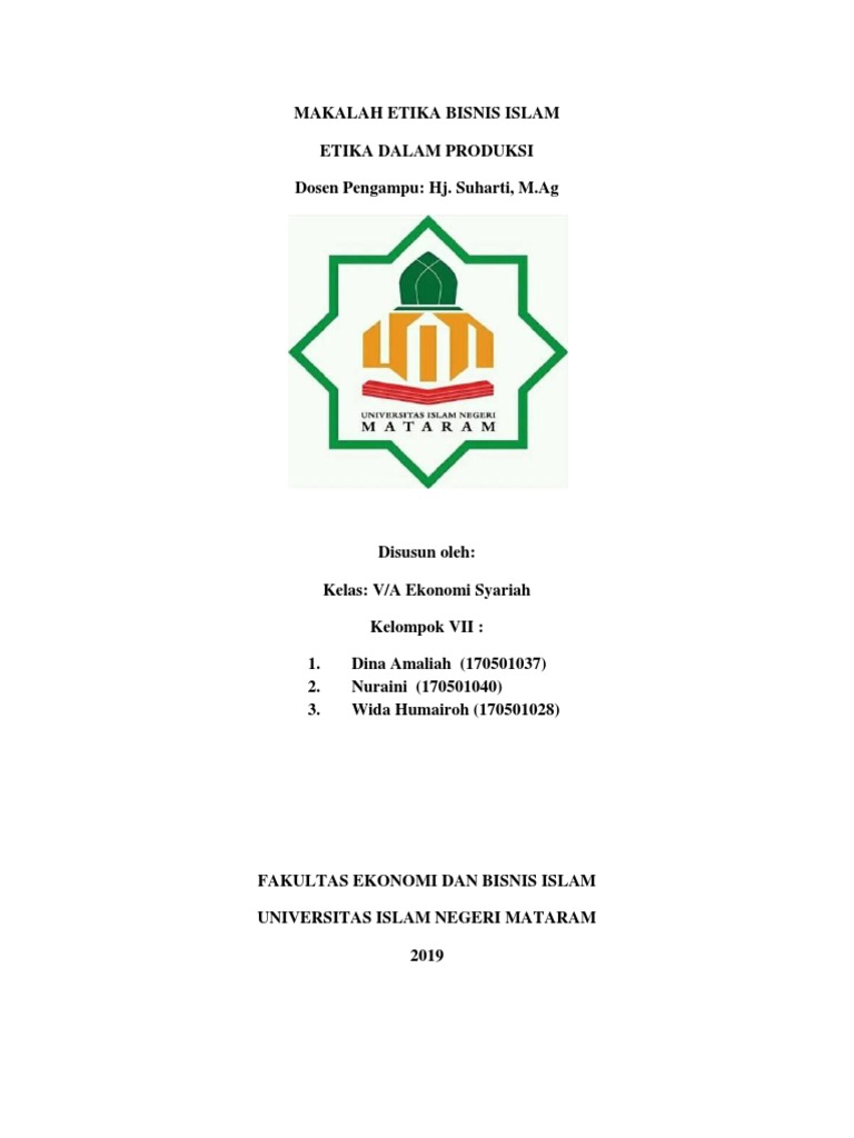 Makalah etika bisnis dalam islam. Mengenai etika bisnis dalam islam sudarsono dalam bukunya yang berjudul etika islam tentang kenakalan remaja mengatakan bahwa etika islam adalah doktrin etis yang berdasarkan ajaran ajaran agama islam yang terdapat di dalam al quran dan sunnah nabi muhammad saw yang di dalamnya terdapat nilai nilai luhur dan sifat sifat yang terpuji. Dalam banyak makalah etika bisnis dalam islam disebutkan soal prinsip esensial yang selalu dipraktikkan oleh rasulullah saw adalah kejujuran yang menjadi landasan paling dasar dalam setiap kegiatan berbisnis. Makalah etika bisnis dalam prespektif islam kelompok 7 asih nugroho mtri wahyu novie novi siswi anggarani nurlian universitas muhammadiyah pontianak program studi manajemen 20152016 kata pengantar puji syukur kita panjatkan hadirat allah swt yang telah memberikan nikmat rahmat serta hidayahnya kepada kita sehingga kami dapat menyelesaikan makalah kami ini dengan judul etika bisnis dalam.