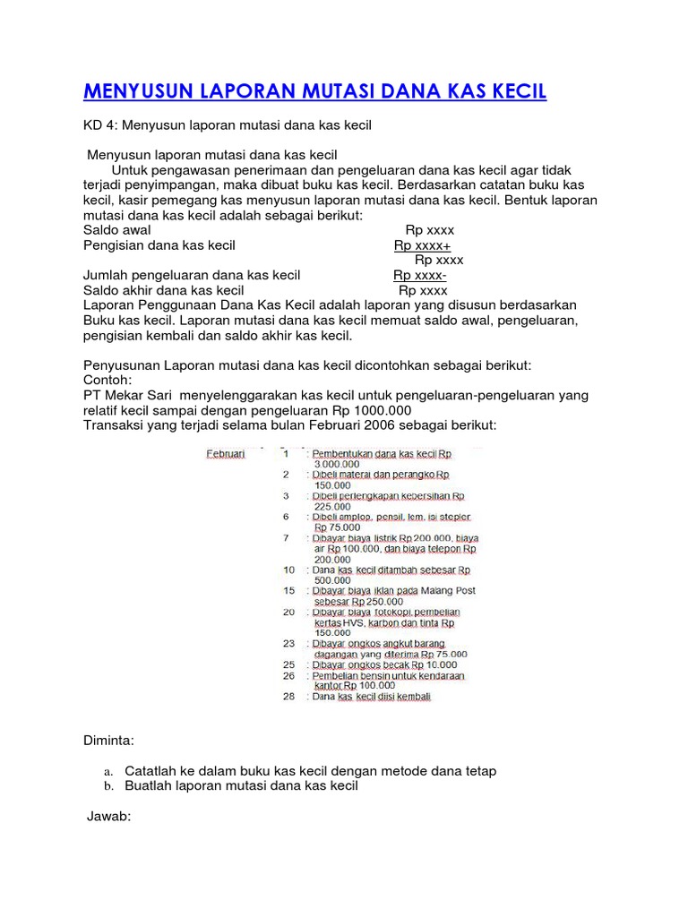 Transaksi yang mengakibatkan terjadinya mutasi dana kas kecil transaksi yang mengakibatkan terjadinya mutasi dana kas kecil adalah sebagai berikut. Ada beberapa transaksi yang dapat mengakibatkan terjadinya mutasi dan kas kecil diantaranya adalah sebagai berikut. Dalam menunjang kelancaran pekerjaan suatu perusahaan membutuhkan sebuah pencatatan pengeluaran kas kecil.