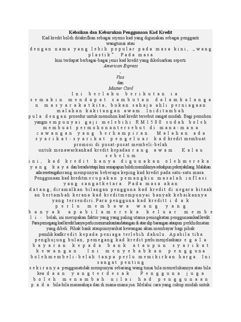 Kebaikan Penggunaan Kad Kredit Karangan