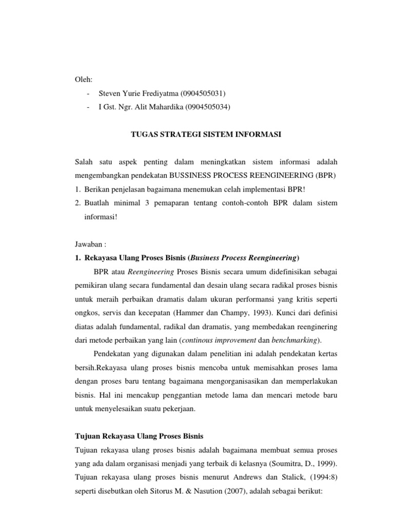 Teknologi informasi sudah banyak digunakan didalam berbisnis. Proses bisnis juga bisa menjadi salah satu sumber keunggulan strategik. Mengenali sistem informasi bisnis.