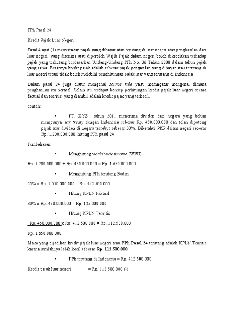 Belajar Pajak Kredit Pajak Luar Negeri Pph Pasal 24