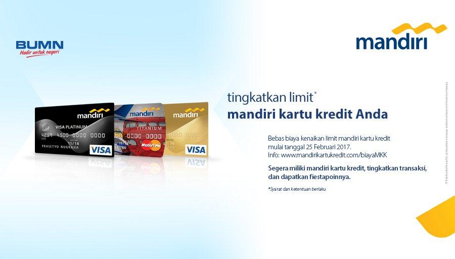 Nikmati kenaikan limit mandiri kartu kredit temporer saat anda membutuhkan keperluan mendesak. Cara menaikkan limit kartu kredit mandiri kartu kredit adalah salah satu kartu yang dikeluarkan oleh setiap bank kepada para nasabahnya yang dirasa mampu dan pantas untuk mendapatkannya. Bank mandiri tidak akan memproses kenaikan limit apabila nasabah melakukan update setelah tanggal yang ditentukan.