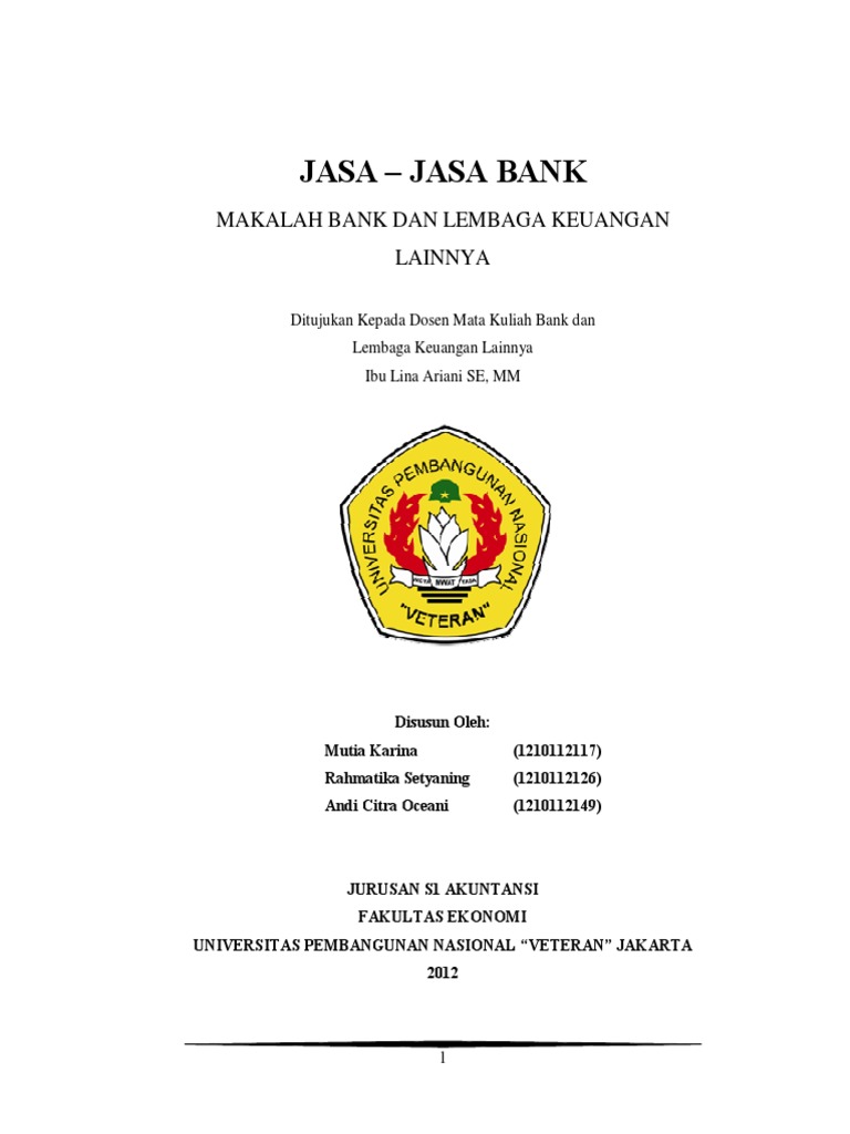 Hal tersebut karena nasabah merasa nyaman melakukan kegiatan keuangan dari satu bank saja. Rini aprilia msc bank dan lembaga keuangan rini aprilia msc 1 lainnya jasa bank lainnya jasa jasa bank lainnya merupakan kegiatan perbankan yang ketiga. Inkaso collectionpenagihan warkat surat surat berharga seperti cek bilyet giro yang berasal dari luar kota atau luar negeri.