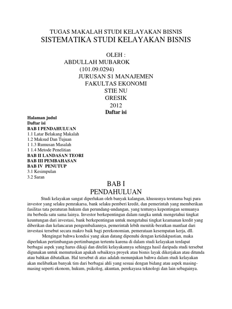 Top Pdf Contoh Makalah Studi Kelayakan Bisnis