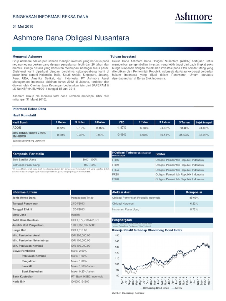 Kebijakan investasi sesuai dengan prospektus reksa dana. Ashmore dana obligasi unggulan nusantara is an open end fund incorporated in indonesia. Kepemilikan terbesar indonesia govt 105 15072038 fr50 indonesia govt 65 15022031 fr87.