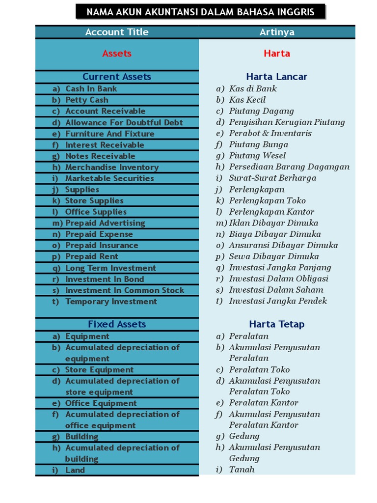 Nama Nama Akun Dalam Akuntansi Dan Bahasa Inggrisnya Terbaru
