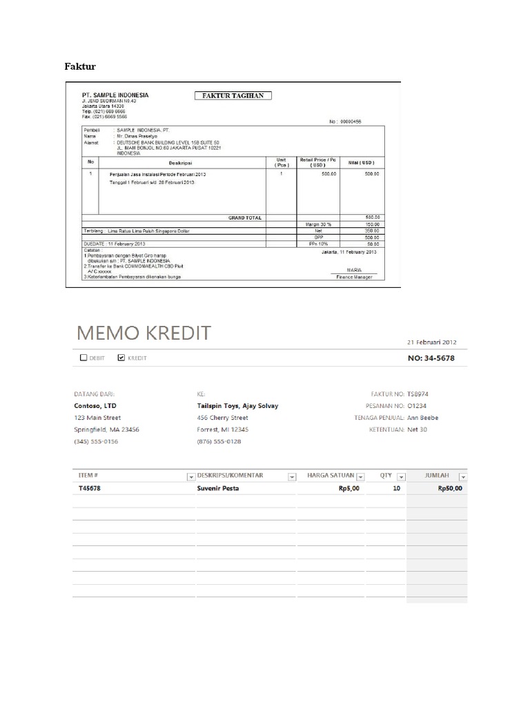 Gambar Contoh Peraga Bentuk Faktur Memo Debit Memo