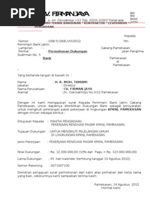 Surat permohonan dukungan bank tender. Lompat ke halaman. Simpan simpan surat permohonan dukungan bank untuk nanti.
