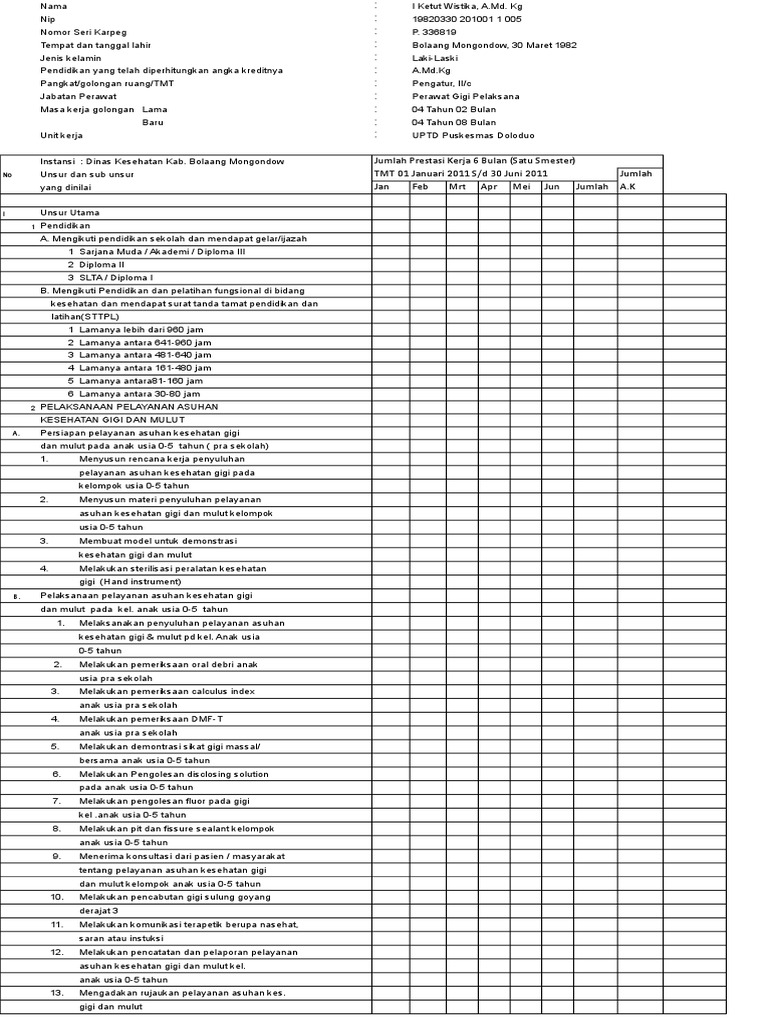 Angka kredit adalah satuan nilai dari tiap butir kegiatan dan atau akumulasi nilai butir butir kegiatan yang harus dicapai oleh perawat gigi dalam rangka pembinaan karier yang. 4 angka kredit minimal pertahun sebagaimana di maksud pada ayat 1 tecantum dalam lampiran i yang merupakan bagian tidak terpisahkan dari peraturan menteri ini. Karya tuliskarya ilmiah adalah tulisan hasil pokok pikiran pengembangan dan hasil kajianpenelitian.
