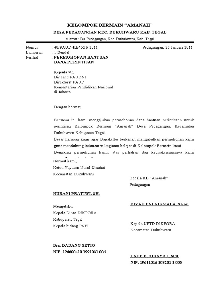 1 satu bandel proposal kepada yth. Lantas bagaimana cara menulis surat permohonan bantuan yang baik dan benar.