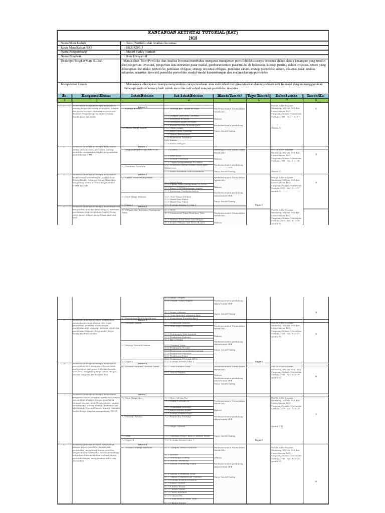 Rat Ut 2018 2 Teori Portofolio Amp Analisis Investasi