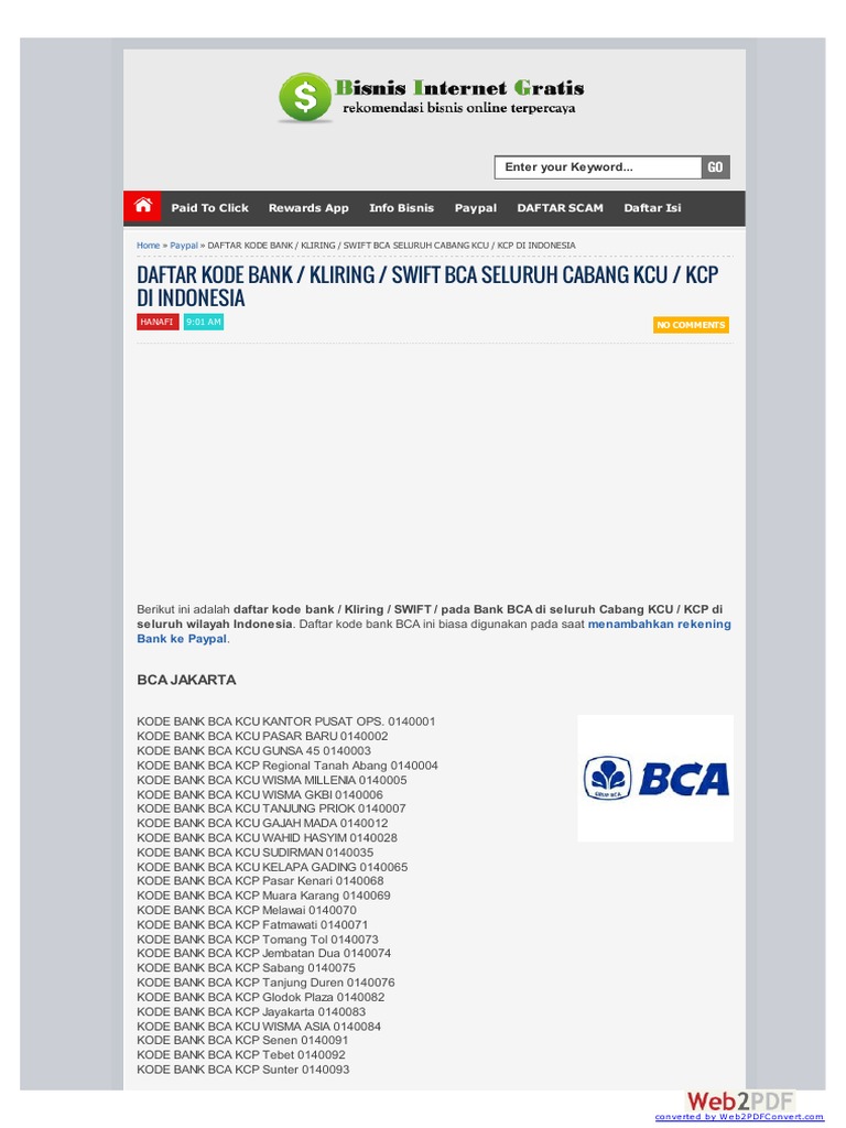 Paypal merupakan yang menyediakan jasa transfer uang bagi para pemilik situs e commerce lelangan dan jenis usaha lain untuk memudahkan pembayaran transaksi mereka. Kode bank dan kode swift bic berikut adalah daftar kode cabang bca di seluruh indonesia. Kode bank bca untuk paypal.